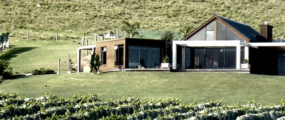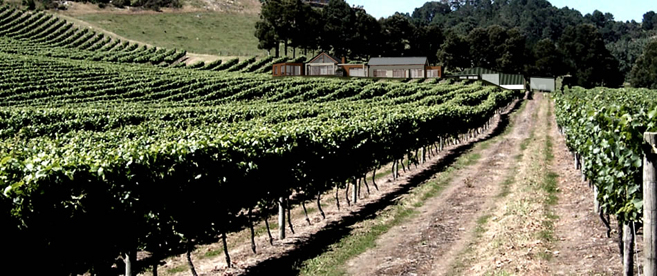 Hinuera stone, schist and rustic cedar weatherboard dominate the outer form of this vineyard estate designed for John & Lorraine Donelley.